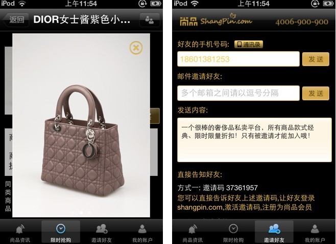 尚品網(wǎng) iPhone 客戶端好友分享功能