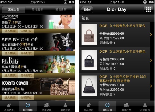 尚品網(wǎng) iPhone 客戶端強力登錄,搶灘奢侈品移動電子商務(wù)