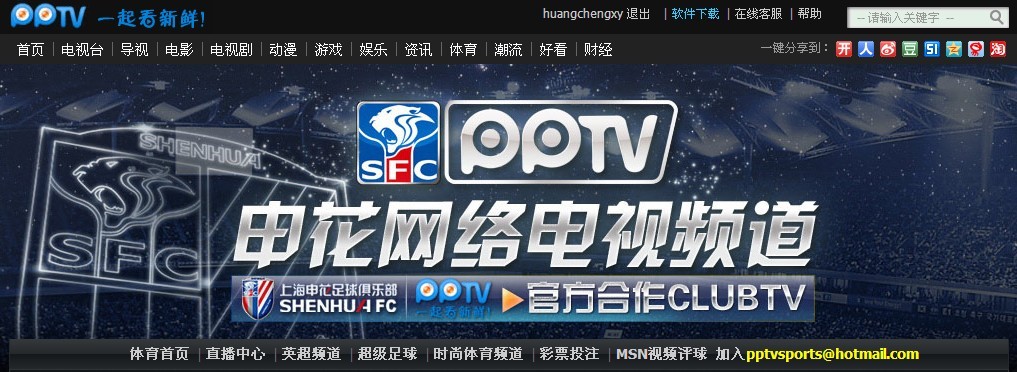 PPTV 網絡電視申花頻道開創了國內體育俱樂部電視臺新模式,全線報道了中超、亞冠訓練、例行發布會、球員專訪及俱樂部各類公關活動,受到廣大球迷熱情追捧。4月6日,申花客場和悉尼 FC 的亞冠比賽直播,同時在線人數突破20萬,申花網絡電視頻道突破了傳統電視平臺收視數據;4月10日,上海申花客場和遼寧隊的中超比賽,同時在線人數再次突破20萬,申花網絡電視頻道品牌形成了一定影響力;5月15日上海申花主場和天津的比賽中,PPTV 網絡電視體育主播周亮、明星球員謝暉帶來具有濃郁地域特色的網絡解說,這是繼“英超蟹皇粥”主題直播板塊之后, PPTV 網絡電視推出的又一個更具有互聯網特質的體育直播主題板塊,當天同時在線人數突破了28萬,創下互聯網直播國內賽事的新紀錄。