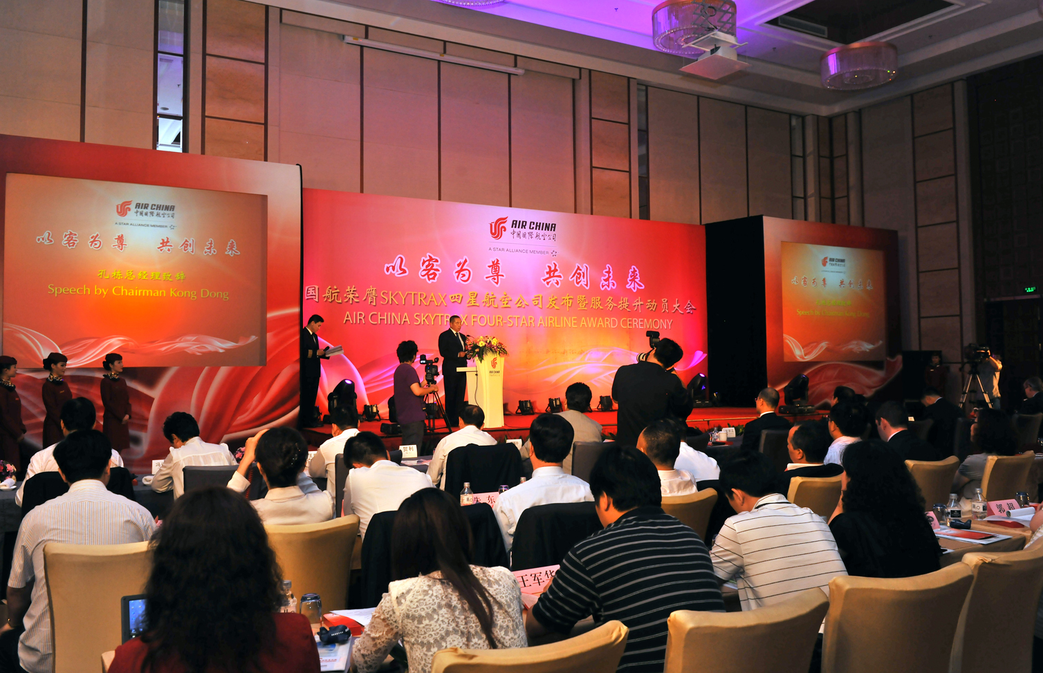 動員大會上,SKYTRYAX主席愛德華向國航總裁蔡劍江頒發了四星級航空公司審定證書;中航集團總經理、國航董事長孔棟致辭表明了不斷改進服務的誠意;中航集團黨組書記、國航副董事長王銀香,國航黨委書記樊澄向質量監督員頒發了聘書;國航服務副總監張春枝代表國航做出新的服務承諾。飛行、乘務、地服、機務、運行、商務系統的員工代表也表達了進一步提升服務的決心。中國民航局、民航消費者事務中心、民航華北局、首都機場各駐場單位的領導到會祝賀。