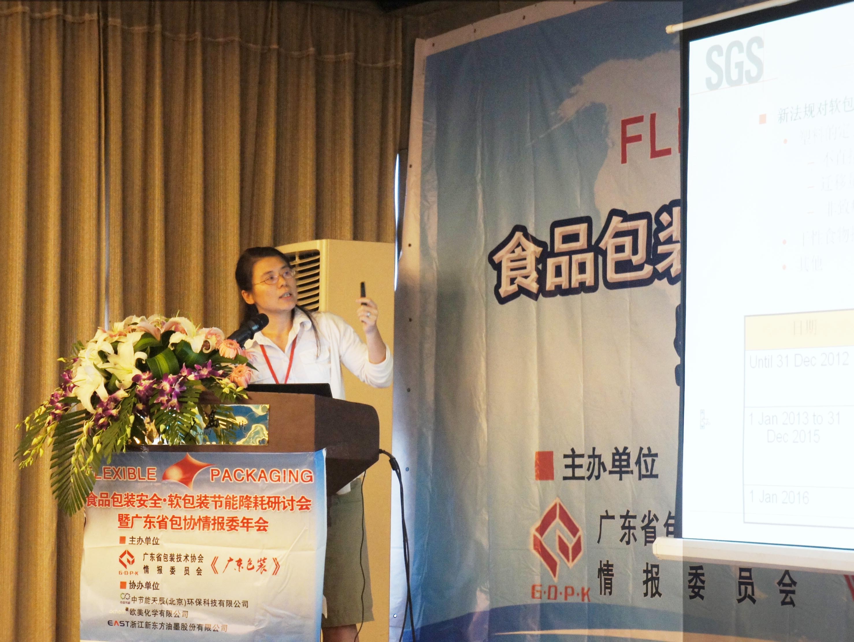 中國廣州2011年8月11日電 /美通社亞洲/ -- 近日,針對食品包裝安全對食品包裝企業(yè)的影響,廣東省包裝技術協(xié)會情報委和廣東包裝雜志社于8月3~5日在成都召開了“食品包裝安全?軟包裝節(jié)能降耗研討峰會暨2011年廣東省包協(xié)情報委年會”,此次會議以食品包裝安全和節(jié)能降耗為主題,作為全球領先的和唯一受邀的第三方檢測認證機構,SGS通標標準技術服務有限公司(下簡稱SGS)食品包裝資深專家孟軍博士作為代表參加了此次會議。會議上她為參會企業(yè)作了“國內企業(yè)如何突圍國際食品包裝標準”并為企業(yè)代表詳細分析與食品包裝安全相關的法規(guī)、執(zhí)行標準,檢測項目、檢測標準、檢測手段以及食品企業(yè)對包裝的安全要求、政策走向。