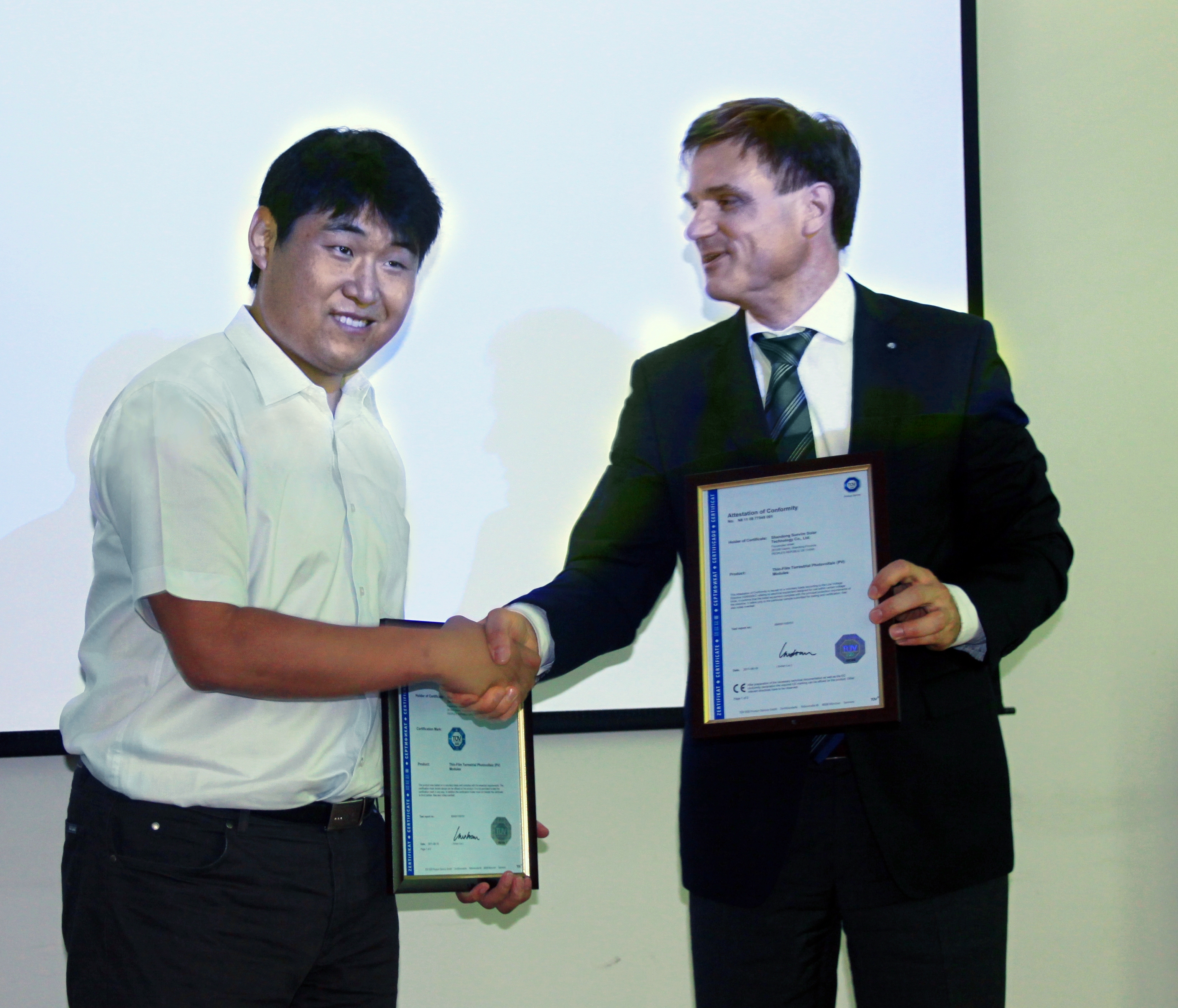 2011年3月,TUV SUD 正式開始了對孚日集團的測試工作,主要依據(jù)標準為 IEC/EN 61646和 IEC/EN 61730。從實驗室收到樣品,到檢測完畢僅耗時3個半月,至頒發(fā)證書也只用了5個月時間,比同類項目操作周期更短,發(fā)證速度更快。