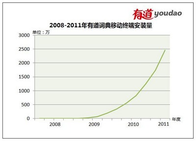 圖二2008-2011年有道詞典移動終端安裝量