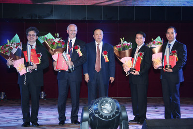 泰科安防亞太區總裁祝金程先生 Robert Zhu (右二) 代表公司領獎