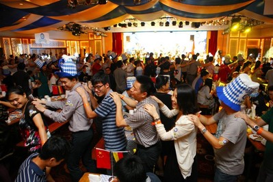 藍白相間的大帳篷、十月節的傳統長凳、鮮釀而成的啤酒、艷麗的民俗服裝,完整的巴伐利亞風情就這樣在深圳“TUV SUD 之夜”的啤酒節活動上演了。期間,啤酒比賽的吶喊聲、德國游戲的歡笑聲和歡快的德國樂聲,把數百位來自不同文化的人,齊齊融在了滿滿的德國風情中,共享一夜的啤酒盛會。