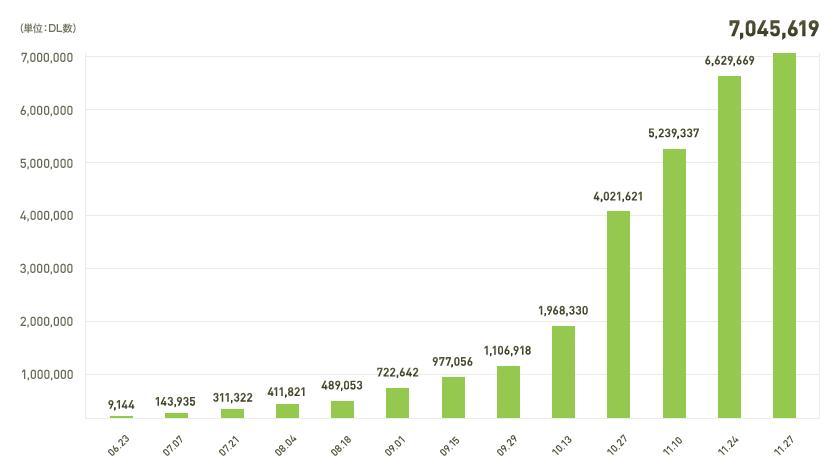 此后,以泰國(guó)、香港、臺(tái)灣等東南亞地區(qū)為中心的用戶數(shù)量也在持續(xù)增長(zhǎng),20天內(nèi)下載量成功達(dá)到200萬(wàn)次(國(guó)內(nèi)外總數(shù))。而此次下載量更突破了700萬(wàn)次。