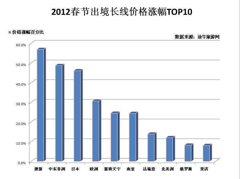 每年春節(jié)期間,多數(shù)旅游熱門方向都會有較大幅度的價格上漲,今年“春游”也不例外,多數(shù)熱門方向環(huán)比漲幅都在30%以上,部分方向漲幅甚至高達80%或出現(xiàn)翻番?!皟r格上漲對市民的出游熱情影響不大,如今年上海出發(fā)至澳洲新西蘭方向的高端線路漲幅達到了71.4%,上海出發(fā)至日本方向的高端線路上漲近58%,但出游人數(shù)卻不降反增。”途牛旅游網度假產品部總監(jiān)魏斌對市民出境游熱情表示看好。