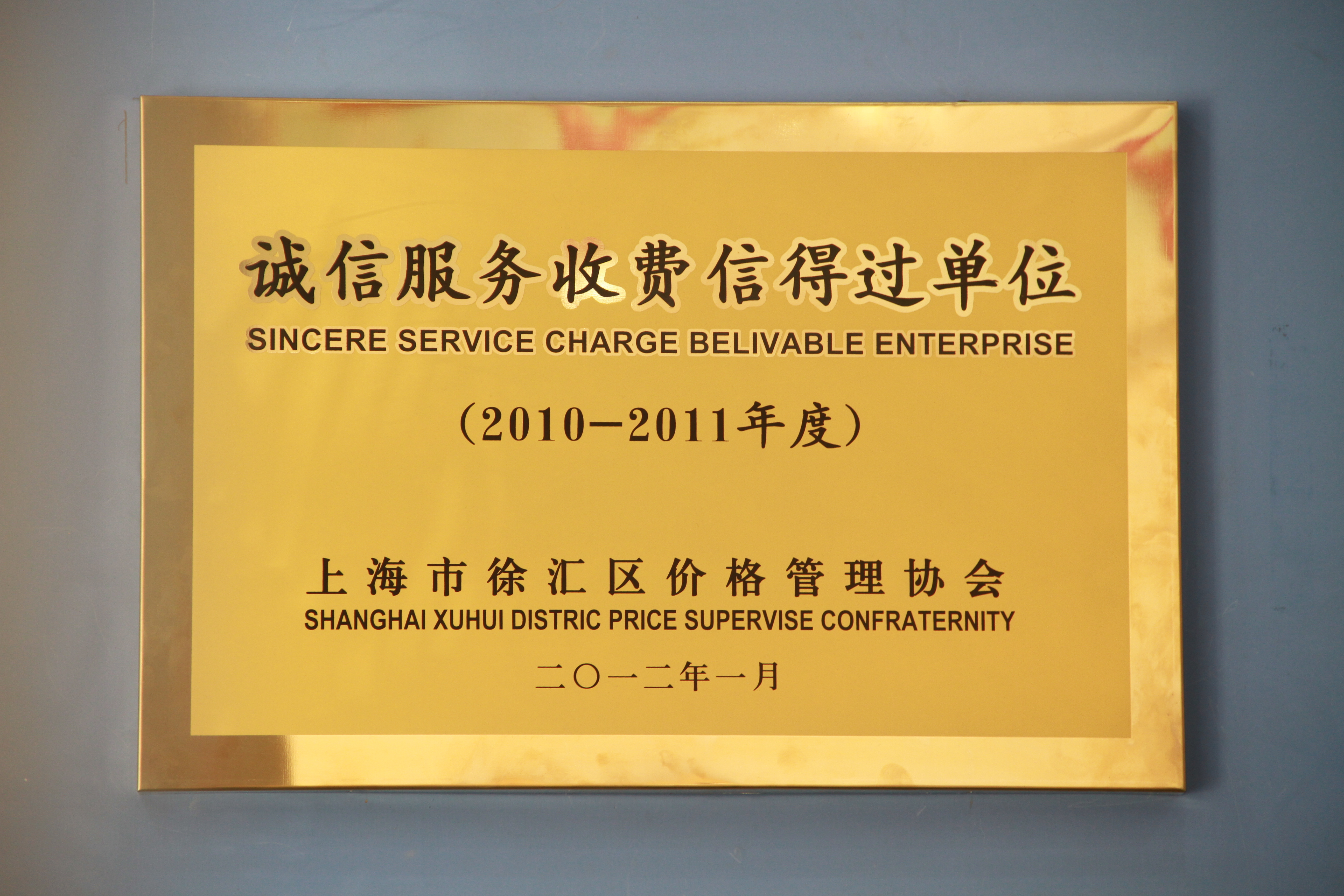 上海市徐匯區(qū)價格管理協(xié)會為仁愛醫(yī)院頒發(fā)的榮譽牌