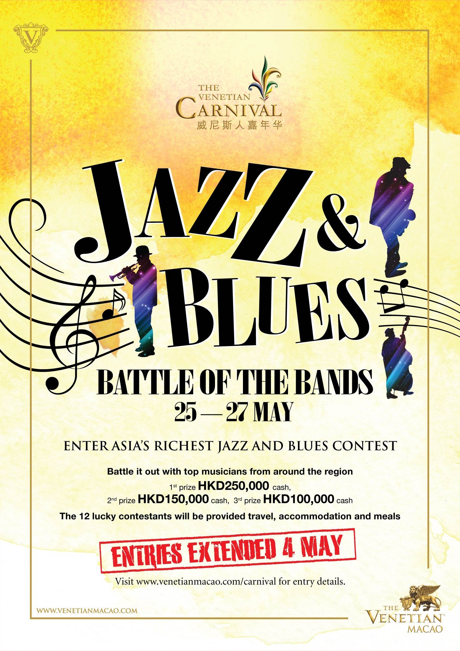 有關(guān)“爵士及藍(lán)調(diào)樂大比拼”的詳細(xì)資料及參賽辦法,請(qǐng)瀏覽 http://www.venetianmacao.com/carnival/,如欲緊貼最新活動(dòng)消息,請(qǐng)瀏覽www.facebook.com/venetianmacao 或 http://weibo.com/venetianmacao。。