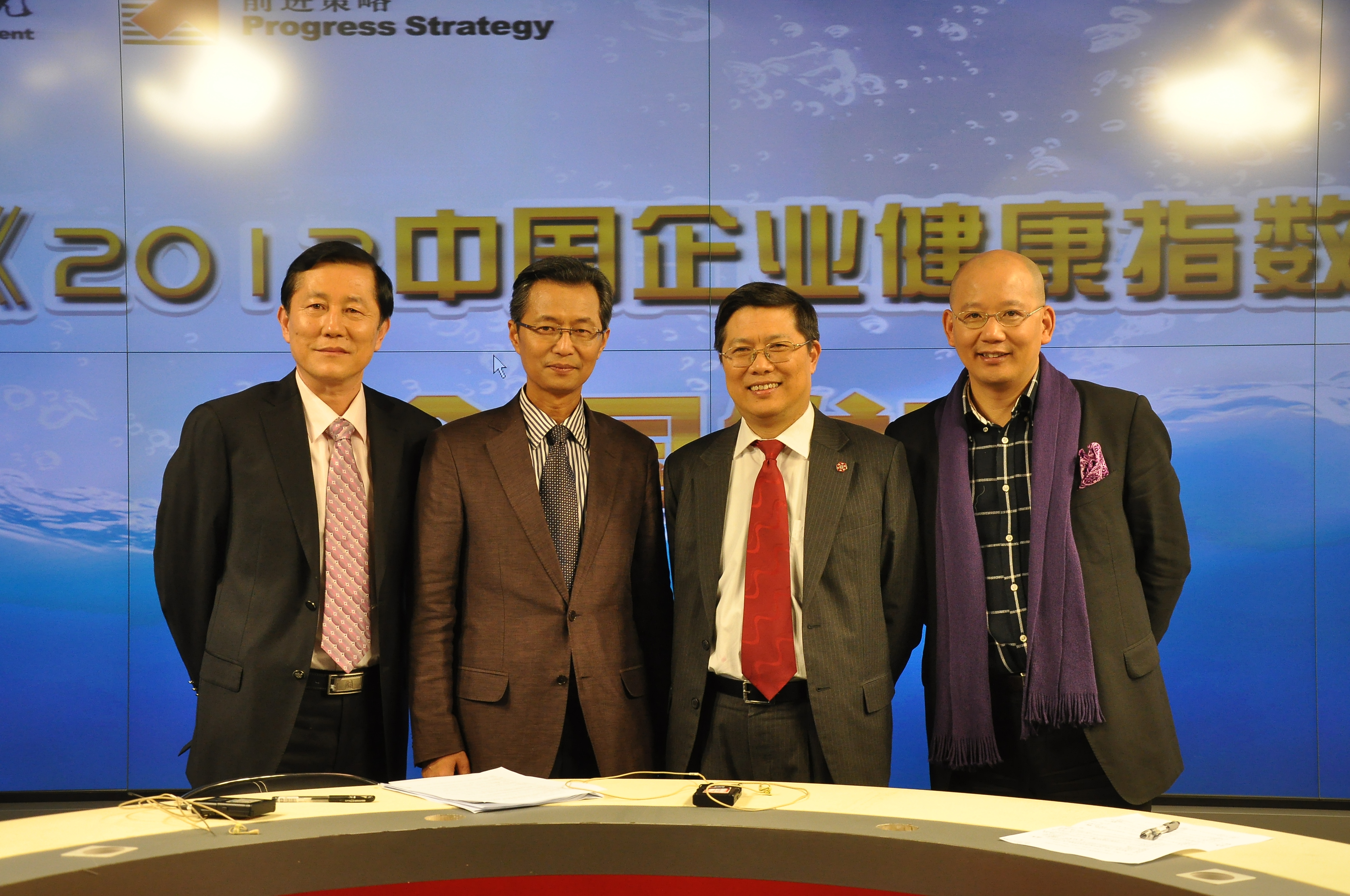 2012年2月29號《2012中國企業健康指數》在京發布現場 左起:馮睎博士,零點前進策略咨詢有限公司總經理;吳曉波教授,浙江大學管理學院院長;湯敏博士,友成企業家扶貧基金會常務副理事長;袁岳博士,零點研究咨詢集團董事長