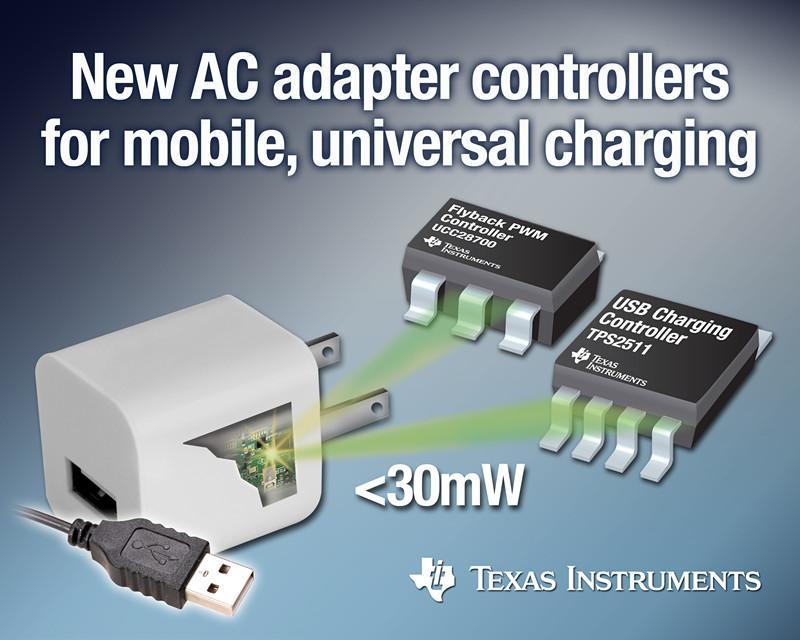 北京2012年8月9日電 /美通社亞洲/ -- 日前,德州儀器 (TI) 宣布推出具有革命性突破的高效率電源管理控制器,可降低待機功耗,幫助智能手機用戶減少 5 瓦特方形適配器耗電,即使在適配器插在墻上電源中忘記拔出的情況下也可節能。最新 UCC28700 初級側控制器將實現更小的方形適配器、無線電源充電站以及其它交流供電設備。此外,TI 還推出了智能 USB 充電端口控制器 TPS2511,符合 USB 電池充電規范 1.2 版,適用于流行智能手機或 5V 平板電腦的充電適配器。