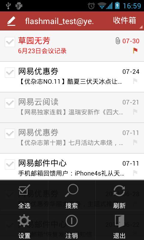 網易郵箱Android客戶端本地操作數據即時同步網頁郵箱,在郵箱上已經閱讀的郵件,webmail同步為已讀狀態,此外無論是刪除、移動還是標記紅旗郵件等操作,任何時候都只需管理其中一個終端,其他終端即可實現同步。