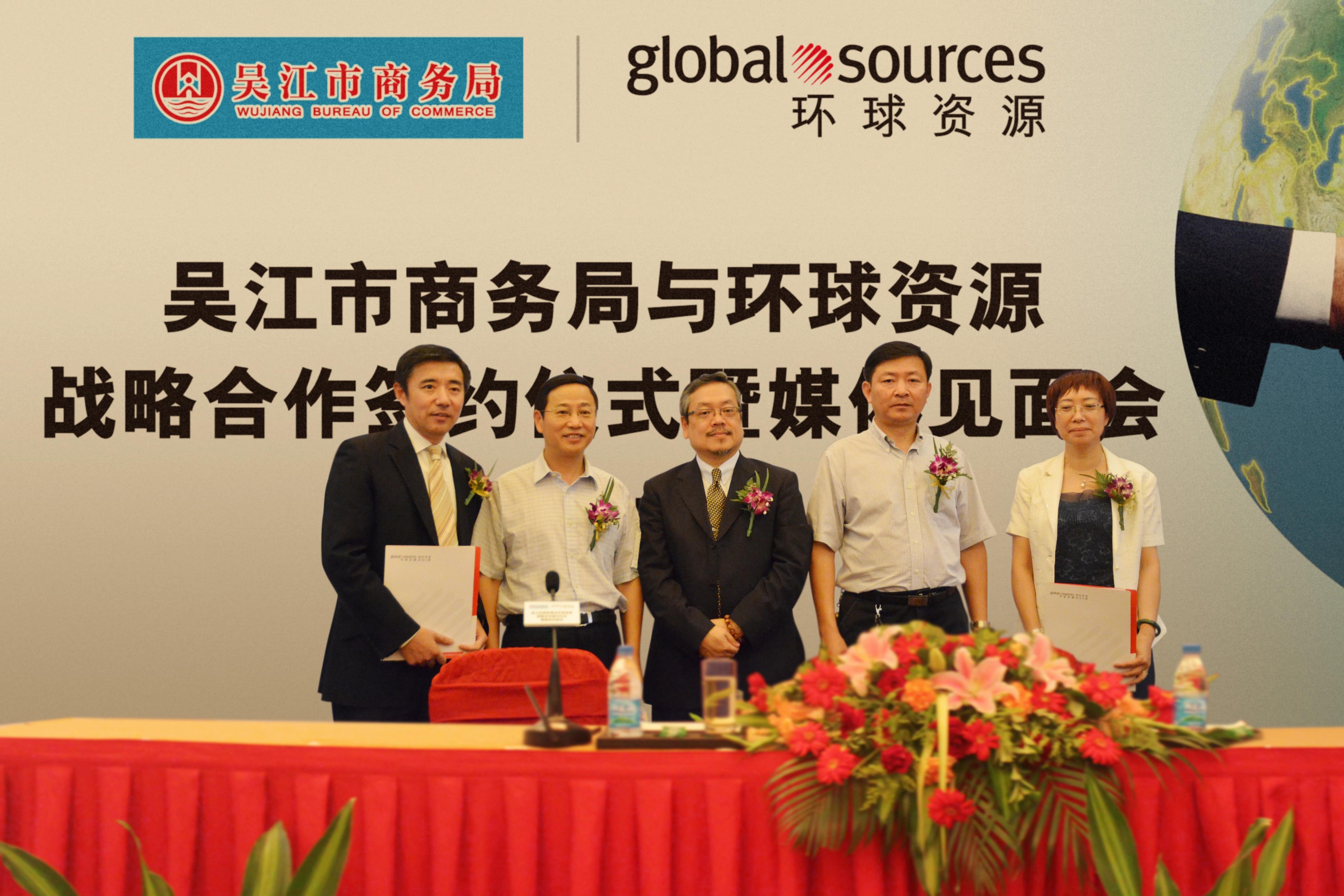 蘇州2012年9月27日電 /美通社/ -- 吳江市商務局與環球資源Global Sources (NASDAQ: GSOL) 今天簽署戰略合作協議。這是雙方首次正式開展深入合作,旨在幫助吳江地區優質出口企業在全球經濟前景尚不明朗的情況下,通過企業創新和轉型實現經濟效益的逆勢增長。