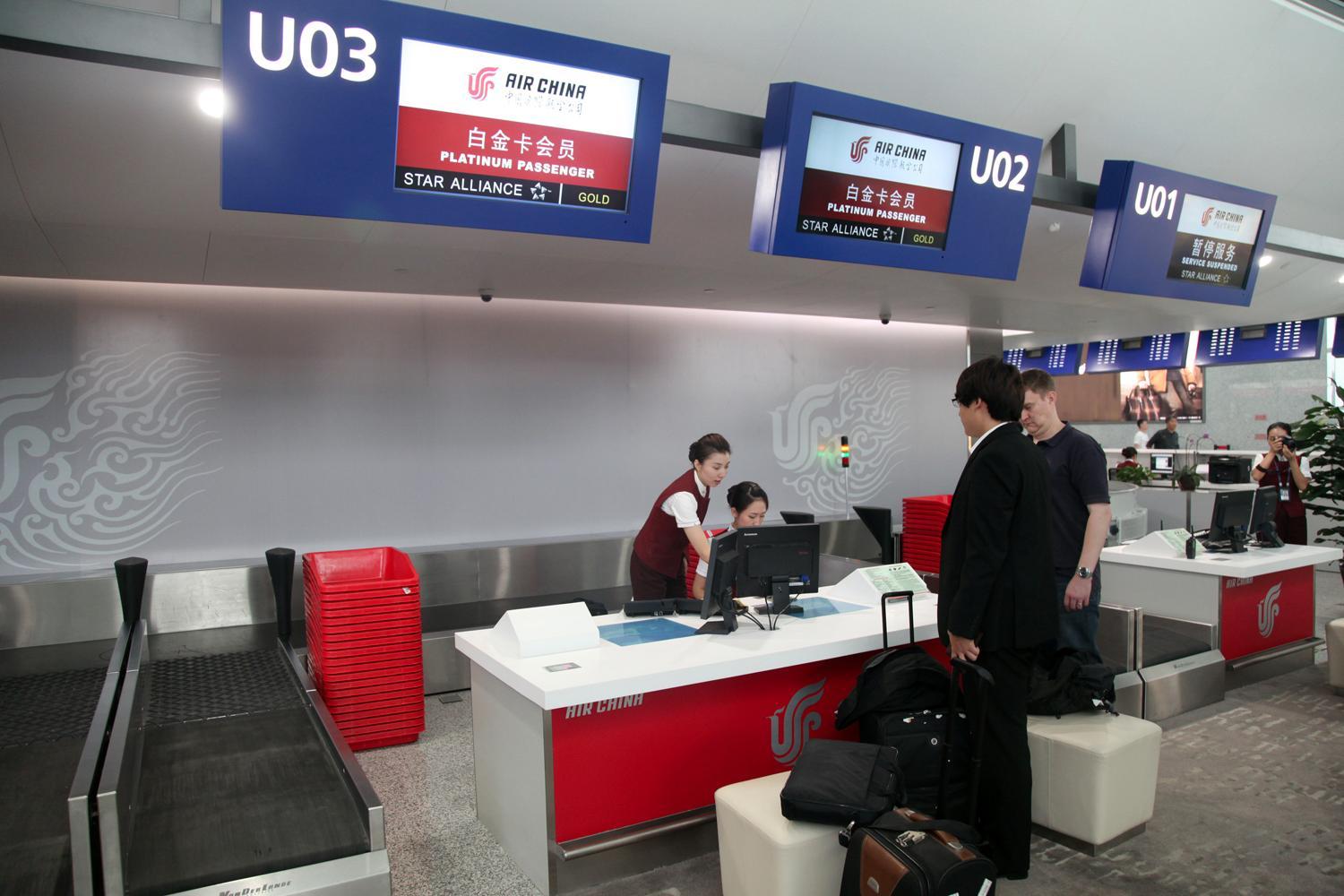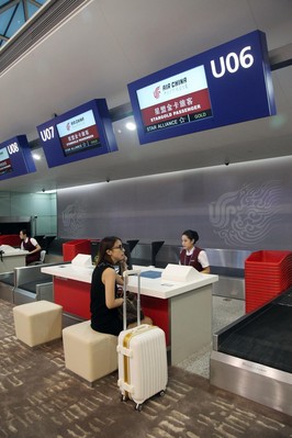 位于成都雙流機(jī)場T2的國航專屬乘機(jī)登記區(qū)為旅客提供個性化值機(jī)服務(wù)(包力達(dá)攝)