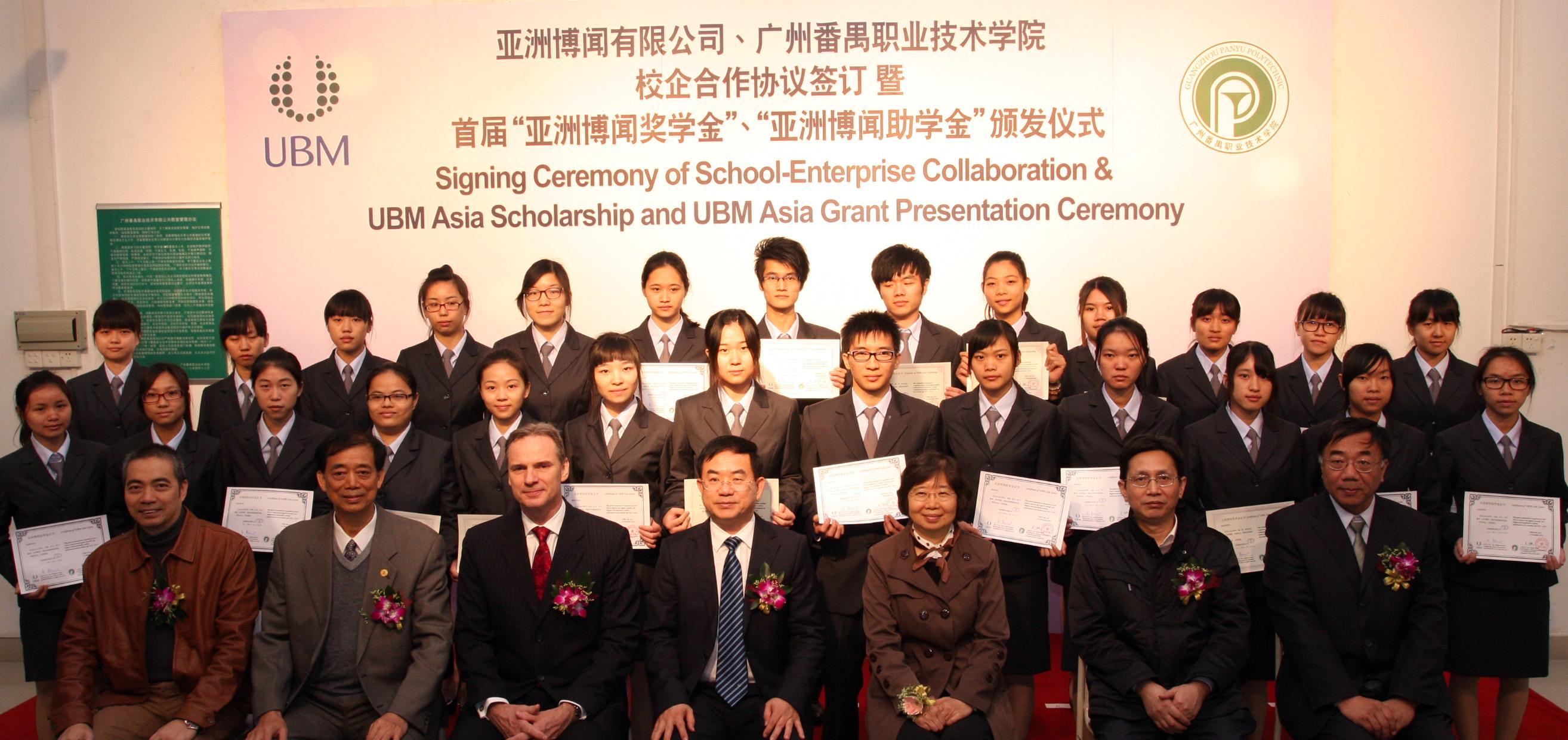 亞洲博聞在珠寶學院設立亞洲博聞獎學金五萬元人民幣及亞洲博聞助學金三萬元人民幣,并于每年舉行頒發(fā)儀式。首屆“亞洲博聞獎學金”由亞洲博聞高級副總裁狄沃夫先生、廣州市教育局巡視員王小強女士及廣州市對外經濟貿易合作局副巡視員李國榮先生頒發(fā)予十三位品學兼優(yōu)的學生。而“亞洲博聞助學金”由廣州番禺職業(yè)技術學院黨委書記孟源北先生、廣州市教育局高教處處長邵國良先生及廣州市番禺區(qū)對外貿易經濟合作局局長黎志偉先生頒發(fā)助學金予十三位勤奮向學的貧困學生,幫助他們順利完成學業(yè)。