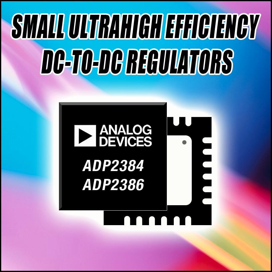 ADP2384/86 dc-dc穩壓器在低端功率級集成超低導通電阻(11 m?)的功率MOSFET,使之成為處理器內核供電較高效的4 A和6 A解決方案。