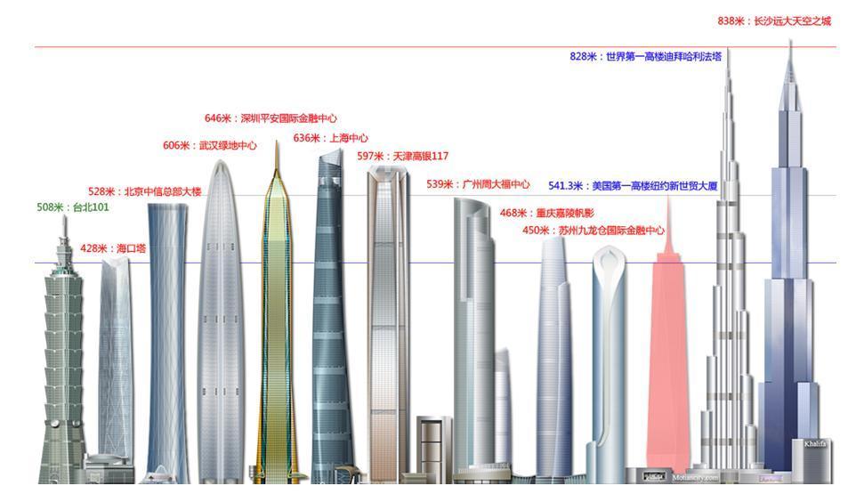 在建的如:深圳平安國際金融大廈(646米,2014年建成),上海中心大廈(632米,2014年),武漢綠地中心 (606米,2017年)………