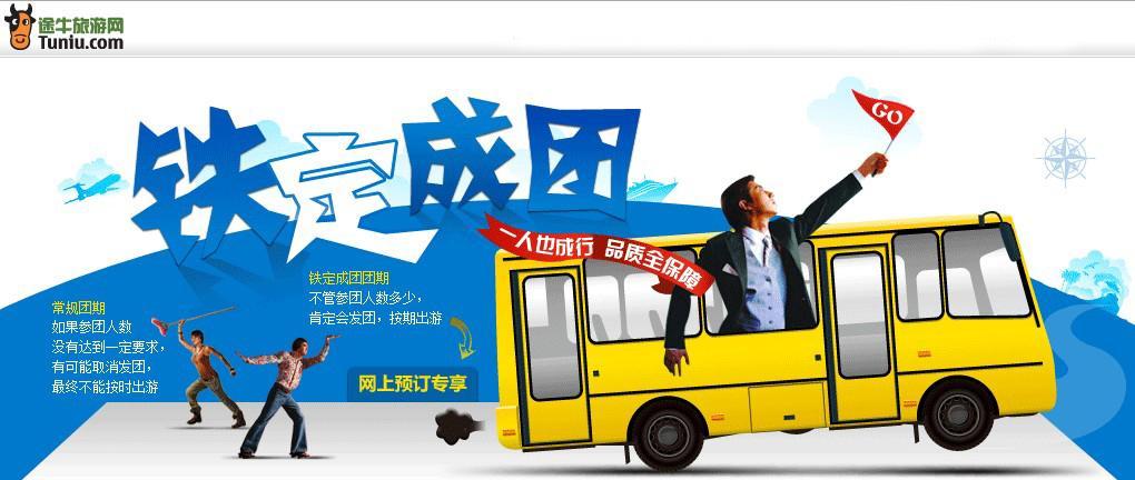 北京和上海2012年12月28日電 /美通社/ -- 相信經常出游的朋友,都遭遇過“人數不夠未能成團”的遺憾。心儀已久的目的地,期盼已久的行程,就這樣失之交臂,不得不說非常遺憾。現在,途牛旅游網推出“鐵定成團”線路,“一人也成行,品質全保障”,游客采用網上預訂方式就可享受按時出游。
