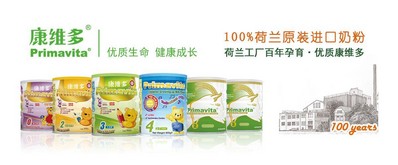 北京2012年12月31日電 /美通社/ -- 一罐奶粉的誕生要經過原料奶、生產過程、罐裝、檢驗、運輸等諸多重要的過程,這其中的每一個環節都至關重要,關系著最后到達寶寶餐桌上的“糧食”是否能保質保量地滿足其生長發育的營養需求。康維多(PRIMAVITA)系列配方奶粉,100%荷蘭原裝進口,給寶貝提供“安全、優質、放心”的營養關愛。
