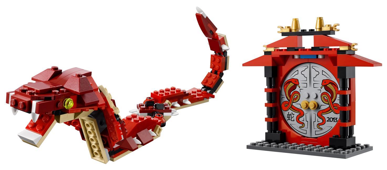 樂高早在2011年便啟動了“蛇年大吉”2013特別版套裝的設計工作,這款產品是在樂高創意百變組系列的基礎上開發完成的。樂高創意百變組系列的產品都具有三合為一的特點,即一盒套裝可以拼搭出三種不同造型,而此次樂高“蛇年大吉”2013特別版套裝更是提供五種不同拼砌方式,不但物超所值,更鼓勵7歲及以上的中國小朋友充分發揮自己的無限創造力和想象力,體會樂高百變的拼砌樂趣。樂高中國該產品項目的 Susan 介紹說,通過包裝內的創意指南,孩子們能夠拼搭出蛇、兩種恐龍、一種翼龍和一扇帶有蛇年生肖圖案的傳統中式拱門。這扇傳統的中式拱門寓意“新春的希望之門”,樂高希望借此祝福中國的小朋友們在新的一年有新的開始,并能時刻體驗樂高式的快樂和創意拼搭。