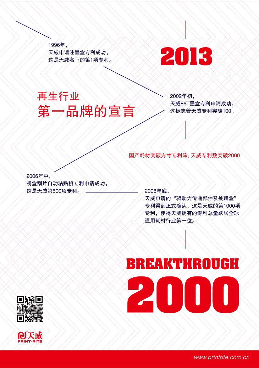 • 2013年1月23日,耗材芯片及耗材容器發明專利申請成功,天威擁有專利數達到2000項!