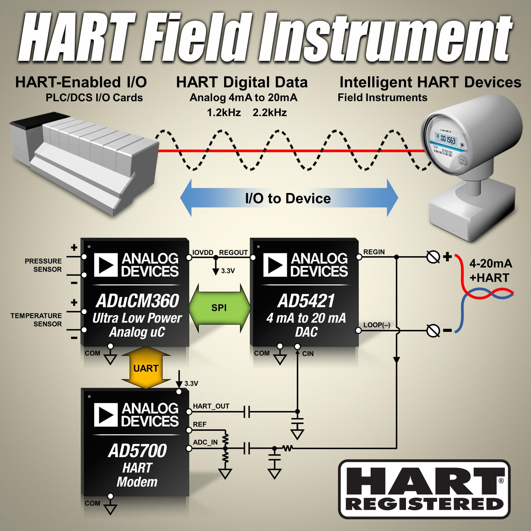 AD5700 是一款完整的 HART調制解調器 IC,相比其它產品,其功耗低38%,電路板面積節(jié)省75%以上。