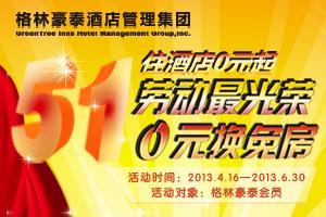 2013年4月16日至6月30日,格林豪泰推出的“勞動最光榮,0元換免房”活動。活動期間,格林豪泰會員只要通過官網 998.com、智能手機m.998.com、APP預訂并入住酒店、官網每日簽到等方式獲得足額的格林幣和推廣金,便可通過格林官網“積分商城”免費兌換格林豪泰千家酒店任意一間/夜豪華客房。另外,根據客人的不同需求,也可兌換家居生活、數碼家電等精美好禮。(溫馨提示:格林幣越多可以兌換的禮品越豐厚。)