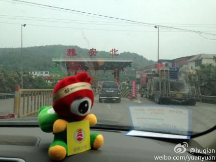 4月21日思源工程、揚(yáng)帆計(jì)劃工作人員一大早乘飛機(jī)到達(dá)成都,滿載首批救援物資的車隊(duì)從成都向雅安進(jìn)發(fā),爭(zhēng)取把網(wǎng)友的愛(ài)心盡快傳遞出去。