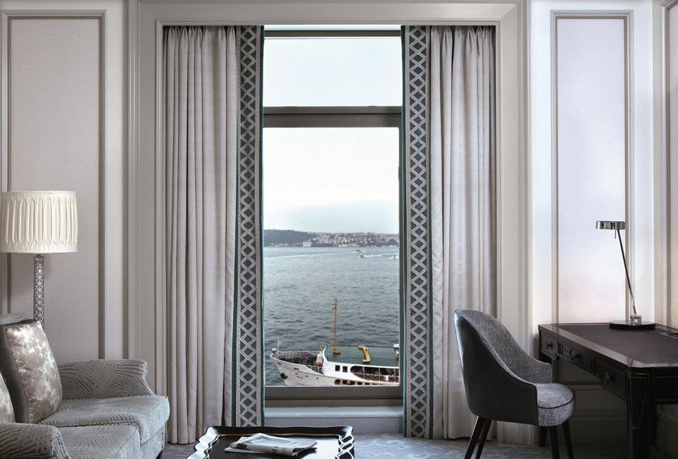 17間套房幾乎全都擁有私人陽臺,眺望博斯普魯斯海峽。最豪華的香格里拉套房擁有三個私人陽臺,分別朝向老城區、亞洲海岸和博斯普魯斯大橋。