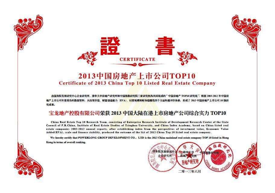 寶龍地產(HK.1238)再次獲得“2013大陸在港上市房地產公司綜合實力十強”、 “2013中國大陸在港上市房地產公司財務穩健性十強”兩大獎項。