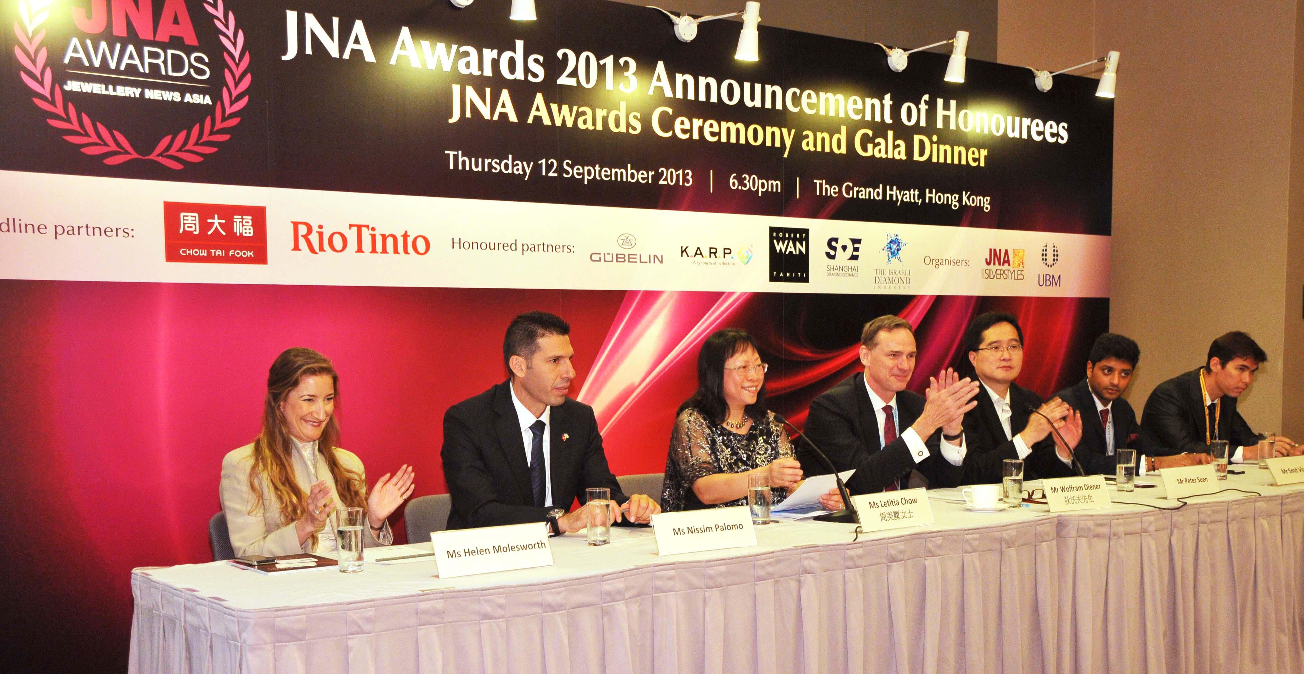 JNA 大獎是亞洲地區珠寶業一項國際盛事,獎項旨在嘉許有優秀表現的業內人士和企業,表揚他們為亞洲地區珠寶業所作出的貢獻。大獎頒獎典禮暨晚宴將于2013年9月12日(星期四)在香港君悅酒店舉行。