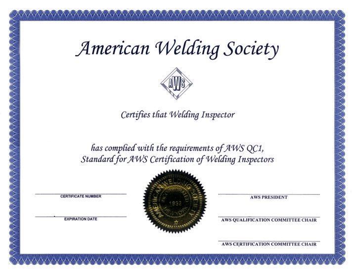 美國焊接學會頒布的注冊焊接檢驗師CWI證書