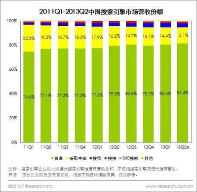 2013Q2中國(guó)搜索引擎市場(chǎng)規(guī)模92.8億,環(huán)比回升