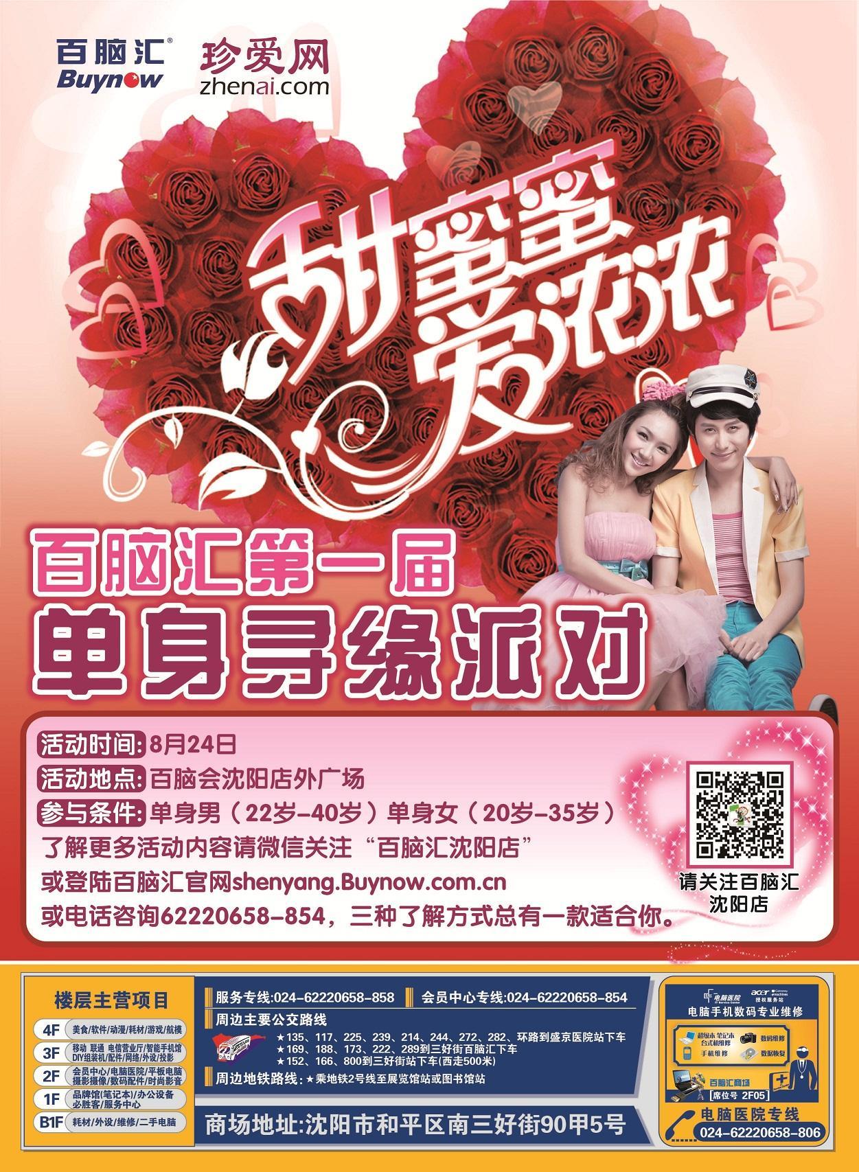珍愛網沈陽百腦匯“甜蜜蜜 愛濃濃”脫單派對,等你收獲甜蜜愛情
