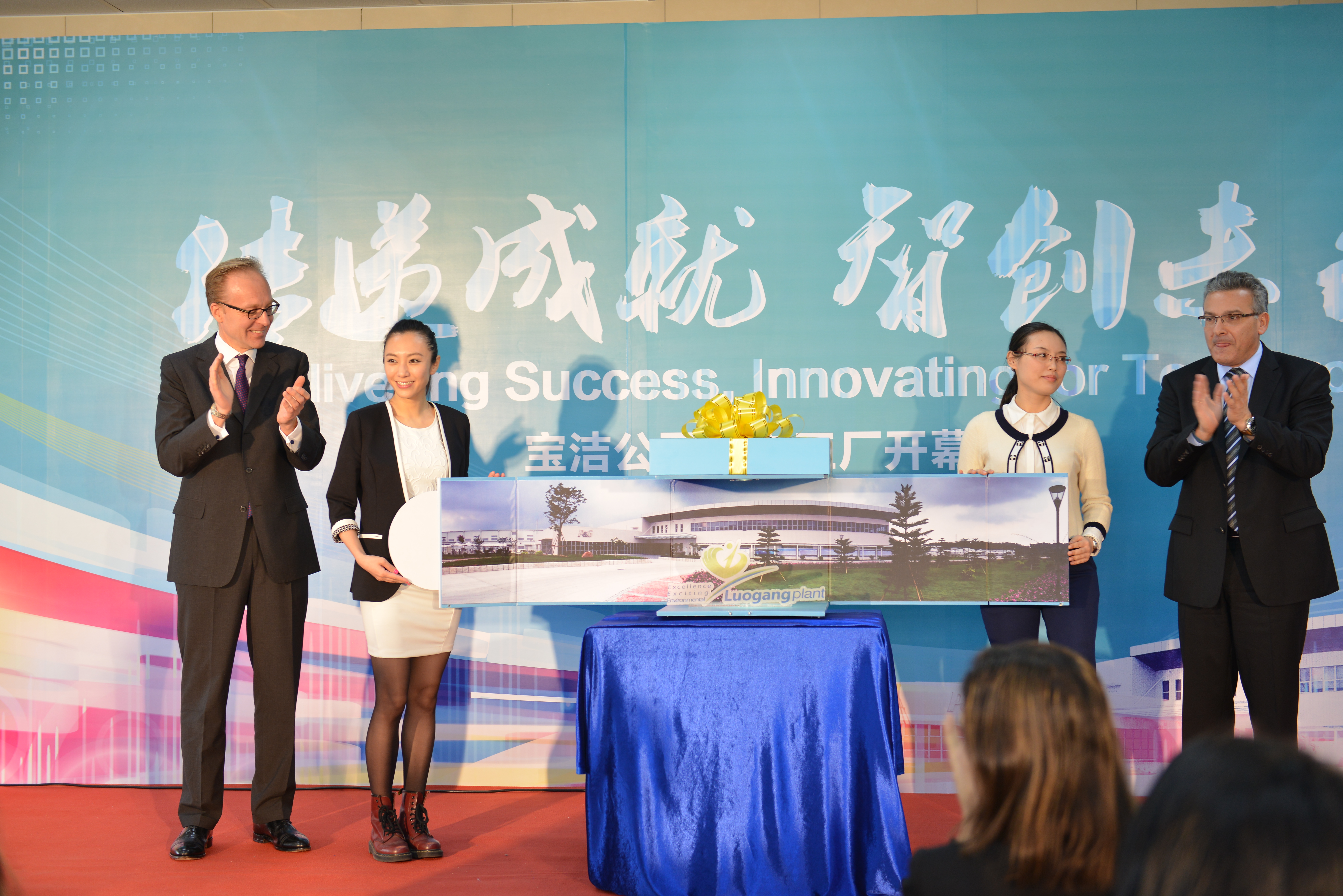 寶潔公司大中華區(qū)總裁施文圣以及寶潔全球供應(yīng)鏈運(yùn)營(yíng)官顏勵(lì)思與媽媽代表共同為工廠(chǎng)揭幕