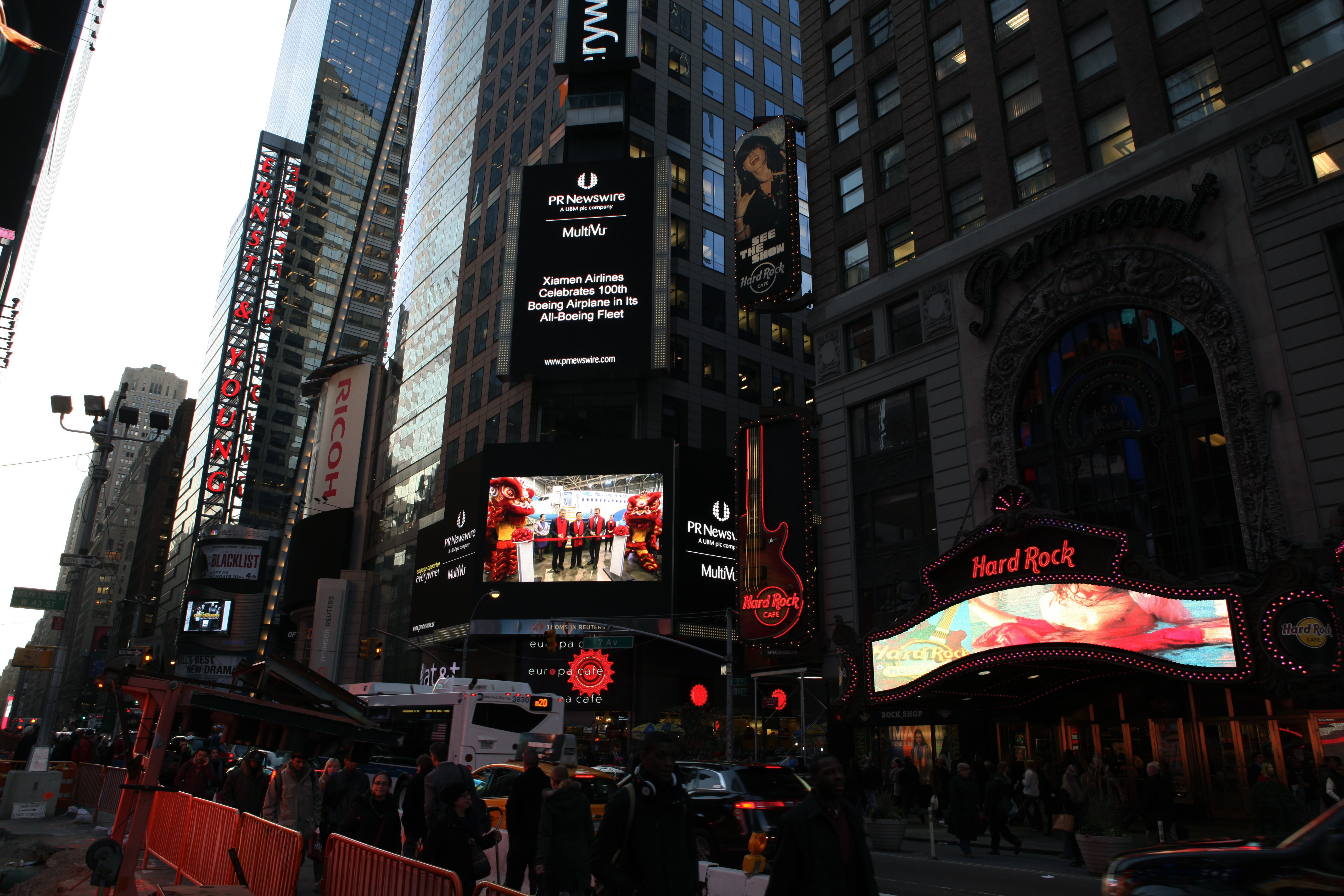 廈門2013年11月25日電 /美通社/ -- 近日,廈航第100架飛機完成交付的照片在紐約時代廣場精彩亮相,成為廈航進軍國際航空市場的重要標志。