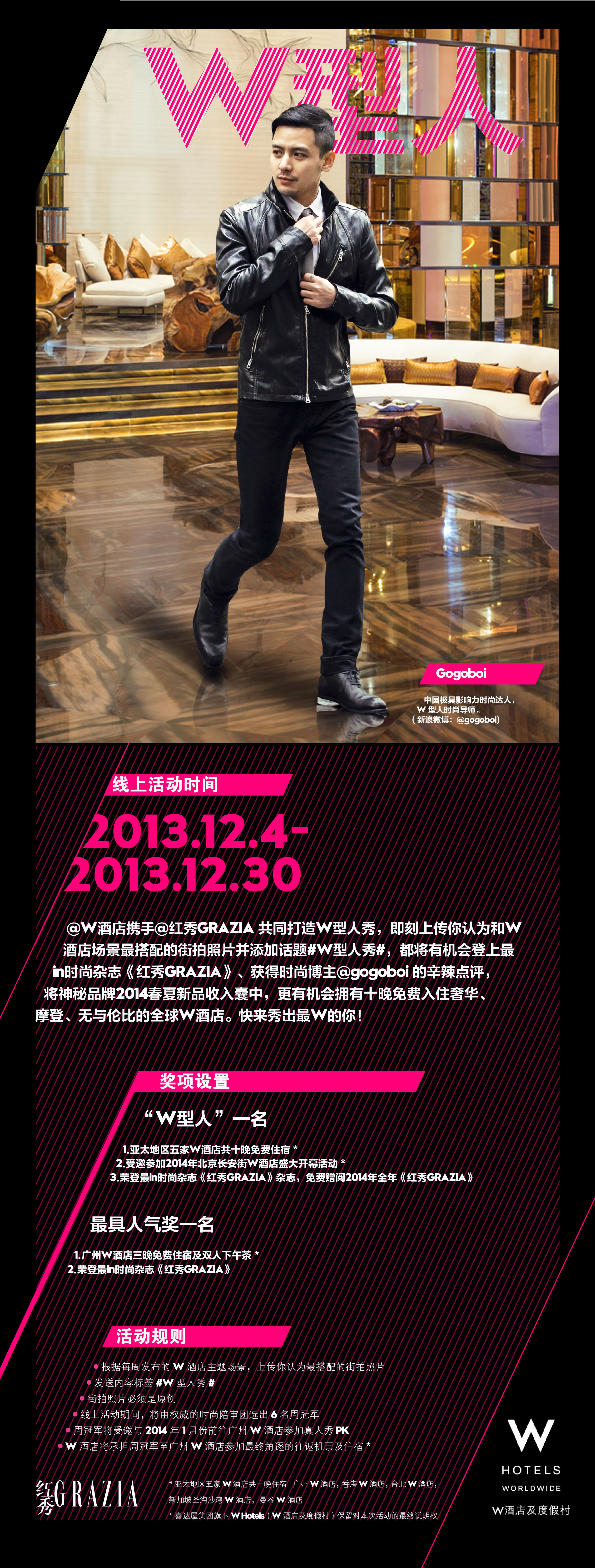 了解更多有關W型人秀活動信息,馬上去微博關注@W酒店 和@紅秀GRAZIA 吧!
