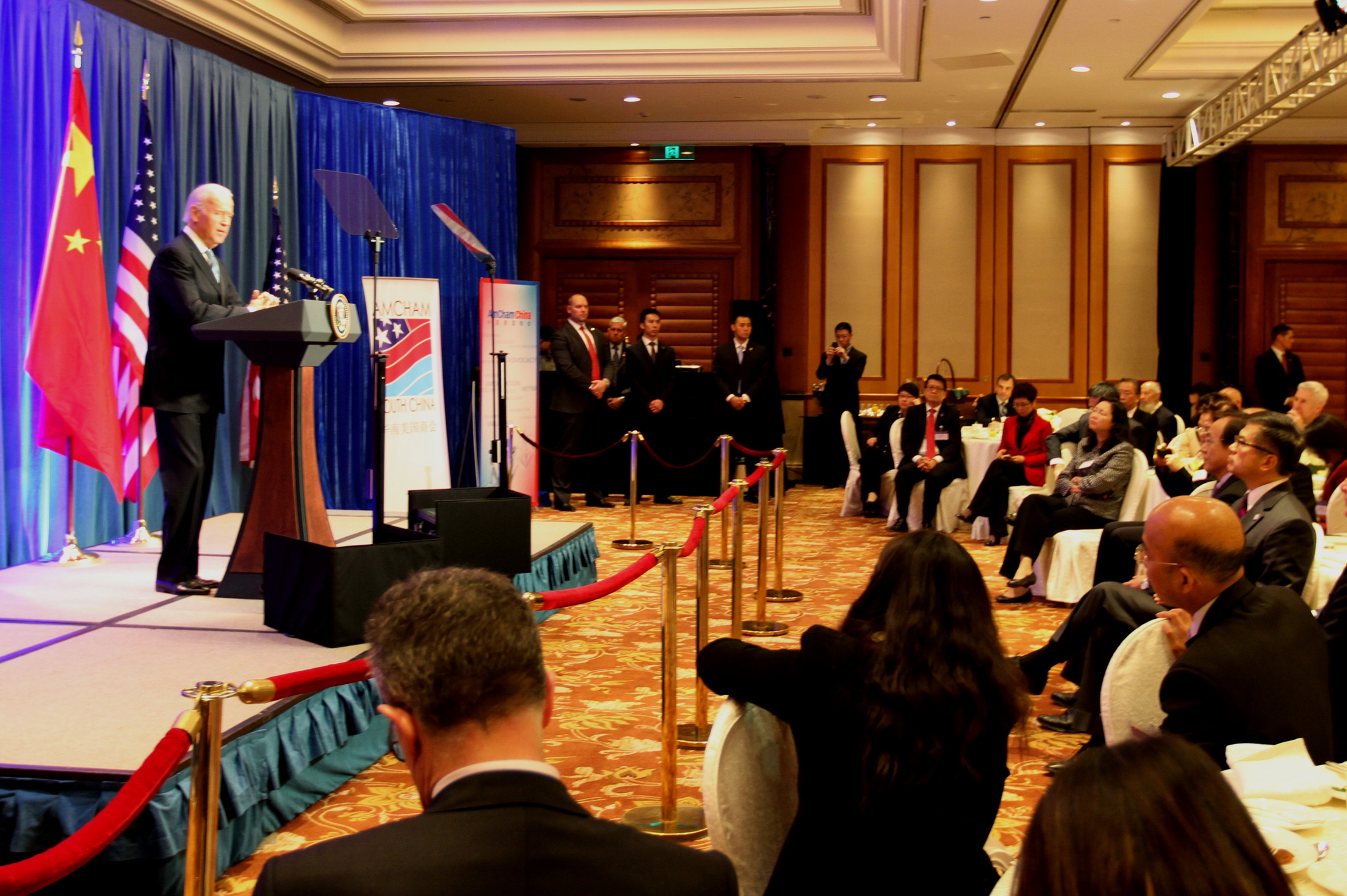會(huì)后,拜登副總統(tǒng)對(duì)三家美國(guó)商會(huì)以及美中貿(mào)易全國(guó)委員會(huì)對(duì)美中經(jīng)貿(mào)關(guān)系作出的貢獻(xiàn)表示感謝,與此同時(shí)他指出美中經(jīng)貿(mào)關(guān)系與與會(huì)企業(yè)高層息息相關(guān),他們非常熟悉美企在華運(yùn)營(yíng)過(guò)程中存在的“機(jī)遇與障礙”。