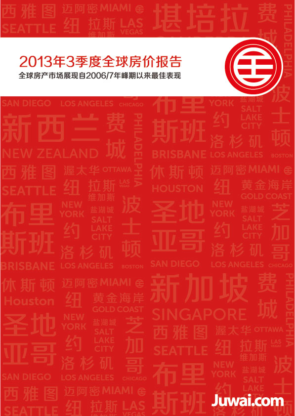 截至2013年3季度,全球房市已現拐點,總體表現自2006/7峰期以來較佳。多數國家房價呈攀升之勢;其中一些國家二線城市相對宏觀市場正經歷更快速的增長。
